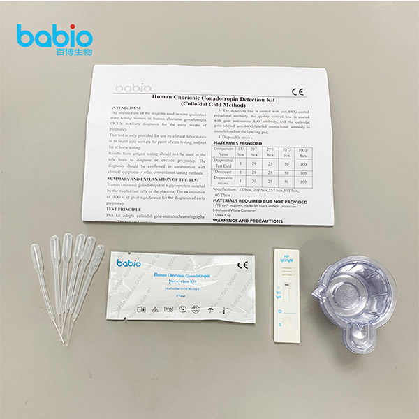 INTENTUM USUM Expertus conceptus usus reagentium adhibitus in vitro qualitative urina probantis feminas in gonadotropin deprehensione chorionicarum humanarum ornamentum (modum auri colloidale), diagnosis auxiliaris pro primis graviditatis hebdomadibus. Hoc praegnationis examen primo tantum usui praebetur ab operariis clinicis vel ad curam sanitatis operariis ad punctum probationis curationis, et non ad domi probationem. Proventus ab antigene probatione non debet adhiberi ut unicum fundamentum ad egritudinem vel graviditatem excludendam. Diagnosis Hcg test confirmari debet in compositione cum symptomatis clinicis vel aliis modis tentationis conventionalis.